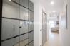 L’ingresso introduce alla zona giorno, conviviale e luminosa, composta da un soggiorno con doppia porta-finestra che si apre su un balcone esposto ad ovest, ideale per godere della luce naturale e del clima mite, e da una zona cottura con arredi realizzati su misura inclusi nel prezzo, perfettamente integrata nello spazio.