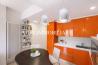 L’ingresso introduce alla zona giorno, conviviale e luminosa, composta da un soggiorno con doppia porta-finestra che si apre su un balcone esposto ad ovest, ideale per godere della luce naturale e del clima mite, e da una zona cottura con arredi realizzati su misura inclusi nel prezzo, perfettamente integrata nello spazio.