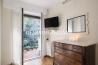 The well-appointed sleeping area includes a double bedroom, a single bedroom, both with access to a second balcony, and two bathrooms, an element of great value for both residential and rental purposes.