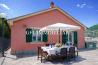 On the ground floor, there are two entrances: the first opens into a living room with a bathroom, complete with a beautiful wooden staircase leading to the upper floor, where there is another living room with a fireplace, a sleeping area, and a study overlooking a large terrace. The second entrance, in a typically Genoese style, leads directly to the kitchen, which opens onto another living room via an archway. On the same floor, there is a hallway separating the living area from the sleeping area, two bedrooms, a spacious walk-in closet, and a second bathroom. The property also includes a beautiful terrace on the first floor, perfect for entertaining and cooking al fresco, and a large, landscaped garden of 2,274 square meters, which includes a 21 square meter wooden outbuilding, equipped with electricity and water, which could become an interesting business opportunity. The spacious, furnished exterior, complete with lighting, offers the opportunity to enjoy the cool breezes from the hillside behind in summer and enjoys extended exposure to the sun even during winter.